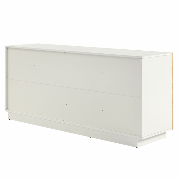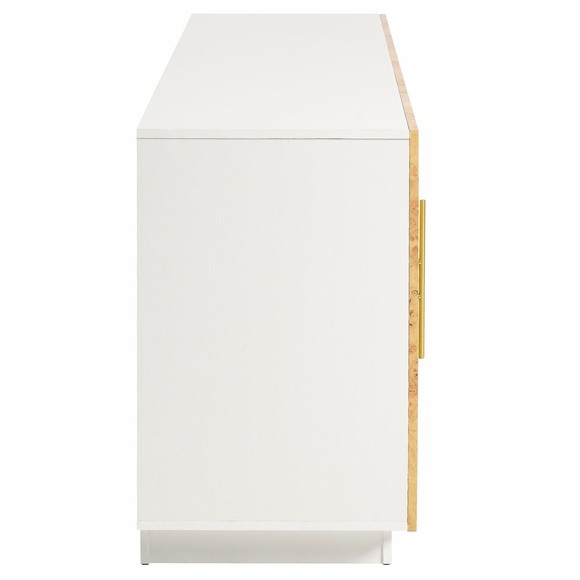 Add a stylish 69 inch storage cabinet to your living room with the eye-catching Abel Burl Wood Sideboard. A perfect blend of mid-century modern design and practical storage, this 4-door cabinet is crafted from durable particleboard and MDF. Featuring beautifully textured burl wood laminate door fronts and elegant gold-tone metal pulls, this tall sideboard buffet complements both modern and farmhouse-inspired interiors. Opening up to reveal adjustable shelves, the Abel cabinet sideboard with soft-close hinge doors offers stylish storage - whether used in the living room as an entertainment cabinet for anchored or wall-mounted TVs, or as a sideboard buffet cabinet in your dining room. While its burl wood laminate adds a timeless, contemporary design, the spacious compartments of this wood credenza cabinet ensure your living room essentials are always within reach. Assembly required. Weight Capacity: 287 lbs.