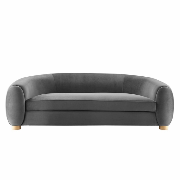 Transport yourself to the comfort of the clouds with the Abundant Performance Velvet Sofa. Bringing glam deco style to a contemporary modern design, this velvet sofa boasts organic lines, French piping detail, and a plush, overstuffed silhouette that's made for lounging. Upholstered in stain-resistant performance velvet, this sofa is padded in dense foam for a premium seating experience. Resting atop round beech wood legs with non-marking foot caps to protect flooring, this velvet couch makes a bold statement in the living room, home office, lounge space, or bedroom sitting area. Weight Capacity: 993 lbs.