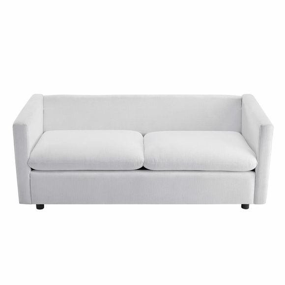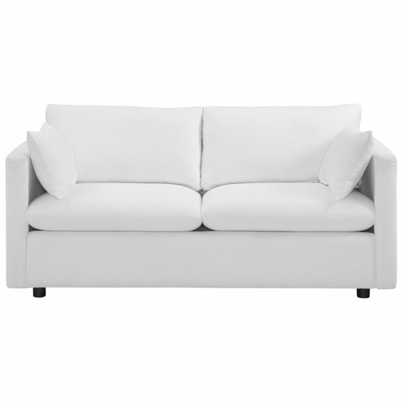 Lounge in style with Activate. A versatile addition to a family room, apartment, office, or small living space, Activate is a cozy modern sofa made with dense foam padding, and upholstered in soft polyester fabric. Rounded cushion corners and complementing accent pillows grant this sofa a contemporary look that's echoed by its calming color, streamlined profile, and subtle wood legs. Say goodbye to the days of hauling heavy furniture. Activate offers modern-day convenience as it ships directly to your home or apartment in a portable, compact box. with a casual yet tailored aesthetic, this living room sofa easily unpacks to become a favorite lounge spot in your home. Sofa Weight Capacity: 1102 lbs.