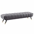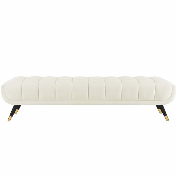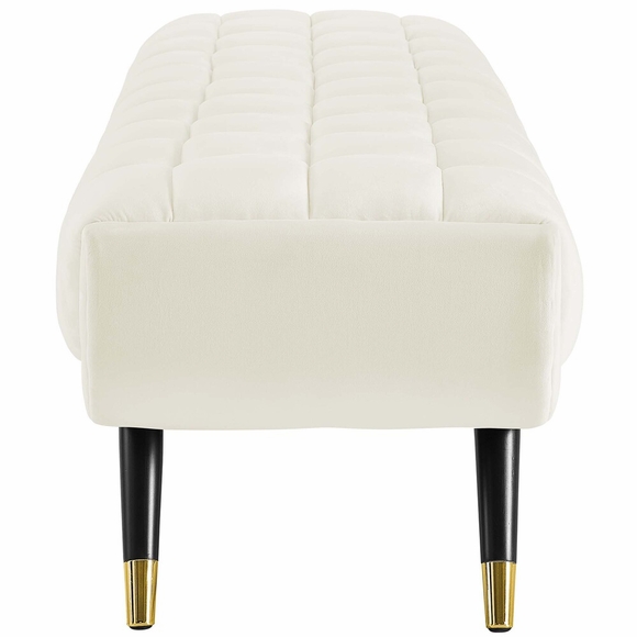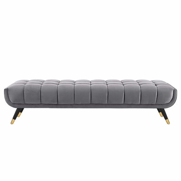 Embolden your living room decor with Adept Performance Velvet Accent Bench. Featuring a blend of chic, contemporary, and mid-century modern design, Adept's broad profile, generous tufting, stain-resistant performance velvet polyester upholstery, and subtle metal accents imbue rich detail and chic sophistication. Kick back and enjoy the plush comfort of the Adept bench while reading your favorite book or lounging with friends and family. Resting atop a splayed black birchwood frame with gold metal end caps, Adept is a striking addition to the home or apartment. Bench Weight Capacity: 440 lbs.