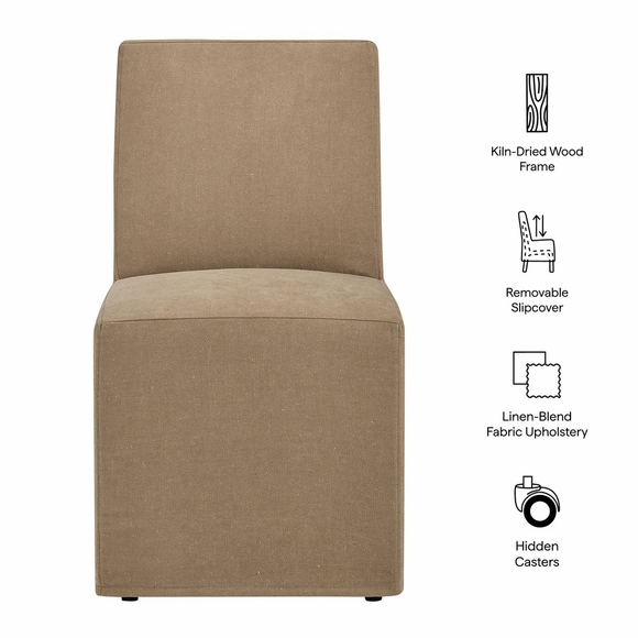 Designed to bring comfort and style to everyday meals or special gatherings, the Alba Set of 2 Dining Chairs blends clean lines with sculptural details. The armless silhouette is paired with soft fabric upholstery, while the back legs are crafted from solid rubberwood and connected by a center stretcher, creating the subtle illusion of a three-leg base. The design feels sturdy and streamlined, with a warm wood tone that complements modern and classic spaces alike. Gently curved backrests and padded seats create a comfortable perch whether you're hosting dinner or working from your dining table. Each curved dining chair is equipped with non-marking foot pins to help protect your floors and arrives ready for easy assembly. Weight Capacity per chair: 500 lbs