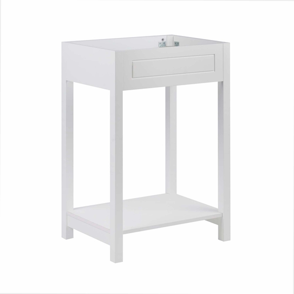 Refresh your bathroom space with the Altura 24" Bathroom Vanity Cabinet. Boasting crisp, clean lines and a streamlined design, this modern vanity is durably crafted with painted MDF and particleboard and features inset detailing for subtle added interest. This vanity features a spacious open storage shelf to accommodate decor or bathroom essentials. Altura includes non-marking foot caps to protect flooring. Sink basin and fixtures not included. Assembly required.