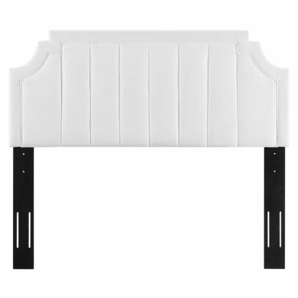 With vertical tufting, a unique silhouette, and luxurious texture, the Alyona Channel Tufted Performance Velvet King/California King Headboard brings glam deco style and vintage modern elegance to your master bedroom or guest bedroom. This king or Cali king size headboard features a beautiful shape, channel tufting, and subtle French piping. Upholstered in soft, stain-resistant performance velvet, this padded headboard offers supportive comfort while sitting up in bed resting or relaxing. A beautiful backdrop for a variety of bedding styles, this adjustable headboard fits king or California king beds with its three mounting positions. Assembly required.