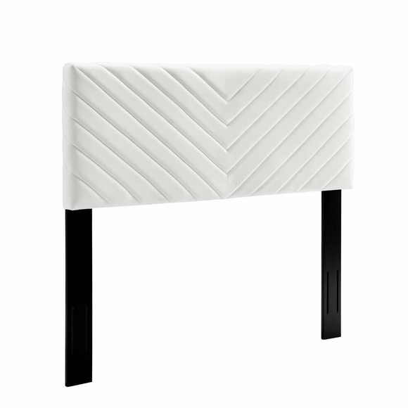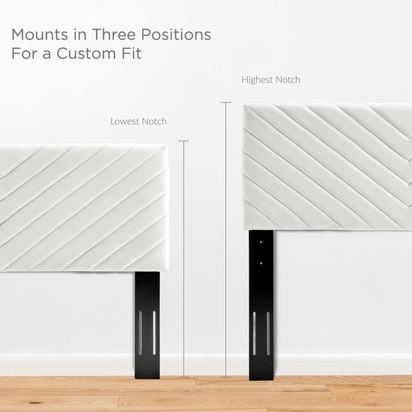 Update your bedroom with elegant decor with the Alyson King and California King Angular Channel Tufted Performance Velvet Upholstered Headboard. with a squared profile, this king and Cali king headboard grants a luxurious presence to your bedroom with angular channel tufting and rich texture. Covered in soft, stain-resistant performance velvet upholstery Alyson King Headboard is both practical and graceful. Ideally suited for guest rooms and master bedrooms, the Alyson King or California King Headboard is made from solid wood and particleboard and features dense foam padding for luxe comfort when reclining, reading, or watching TV in bed. This upholstered headboard fits most king or Cali king size beds and has three height-adjustable positions for customization.
