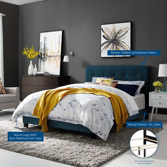 Inspire sweet dreams with a cozy twin bed. Designed with chic elegance and contemporary style, Amira comes with a soft polyester fabric upholstered base, timeless button-tufted headboard, and wood bed frame and legs, with non-marking foot caps. Complete with a reinforced center beam for maximum stability, Amira accommodates memory foam, spring, latex, and hybrid mattresses. A sleek and sophisticated centerpiece to the kid's bedroom or guest suite, this modern bed effortlessly transforms your bedroom decor with its luxe look. Box spring required (not included). Bed Weight Capacity: 800 lbs.