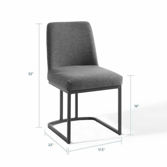Striking lines and simple form blend to produce the Amplify Upholstered Fabric Sled Base Dining Chair. A boldly flowing matte black stainless steel sled base supports the premium seating experience produced by the soft and durable polyester fabric upholstery for a dining chair suitable for a variety of decor styles. Dense foam padding and gentle curves accent the glam deco elegance of the Amplify Dining Side Chair. Whether the Amplify Accent Chair is gracing your dining room, living room, lounge room, or office, visitors and guests will comment on this eye-catching addition. Chair Weight Capacity: 331 lbs. Assembly Required.