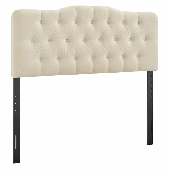 Bring a soft, tailored look to the bedroom with the Annabel Linen Full Headboard. Designed with a gently curved silhouette and diamond button tufting, this full headboard adds a simple, classic touch to any room. With premium linen blend upholstery and dense foam padding, it gives dorm rooms, teen spaces, and overnight guests a comfortable spot to read or relax in bed. Built on a sturdy wood-blend frame, the Annabel Padded Headboard is height adjustable with seven different mounting positions. Assembly Required.