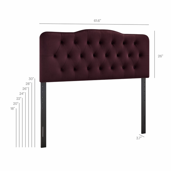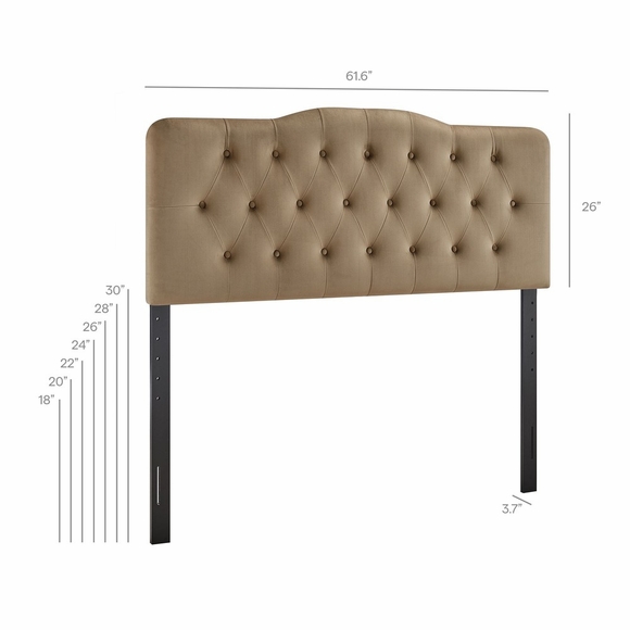 Bring a soft, tailored look to the bedroom with the Annabel Velvet Queen Headboard. Designed with a gently curved silhouette and diamond button tufting, this queen headboard adds a simple, classic touch to any room. With stain-resistant performance velvet upholstery and dense foam padding, it offers a comfortable spot for reading or relaxing, perfect for a main or guest bedroom. Built on a sturdy wood-blend frame, the Annabel Padded Headboard is height adjustable with seven different mounting positions. Assembly Required.