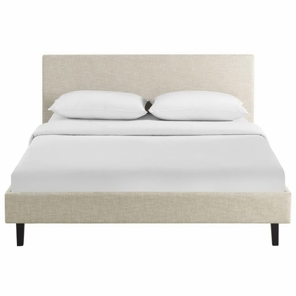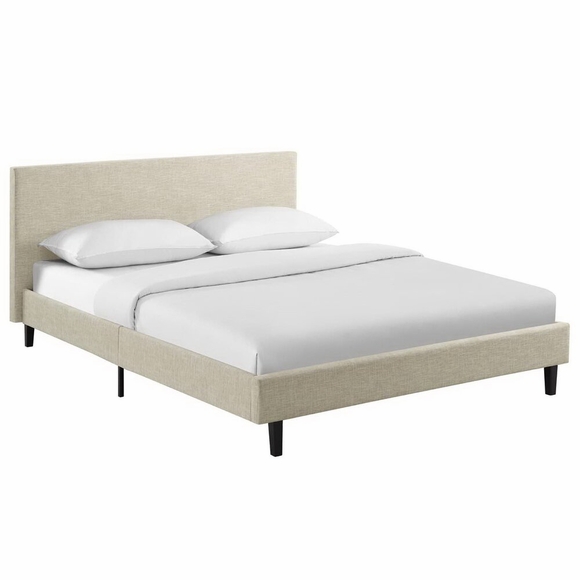 Restyle your bedroom decor with the Anya Platform Bed. Designed with a chic avant-garde look, Anya comes with an upholstered polyester fabric base and headboard, solid wood legs, and a slatted wood support system that eliminates the need for a box spring. Complete with a reinforced center beam with supporting legs for maximum stability, Anya accommodates the various mattress types on the market such as memory foam, spring, latex, and hybrid. A sleek and striking centerpiece to your bedroom, Anya is a quality modern bed poised to thoroughly transform your space. Weight capacity up to 1300 lbs. Mattress Not Included.