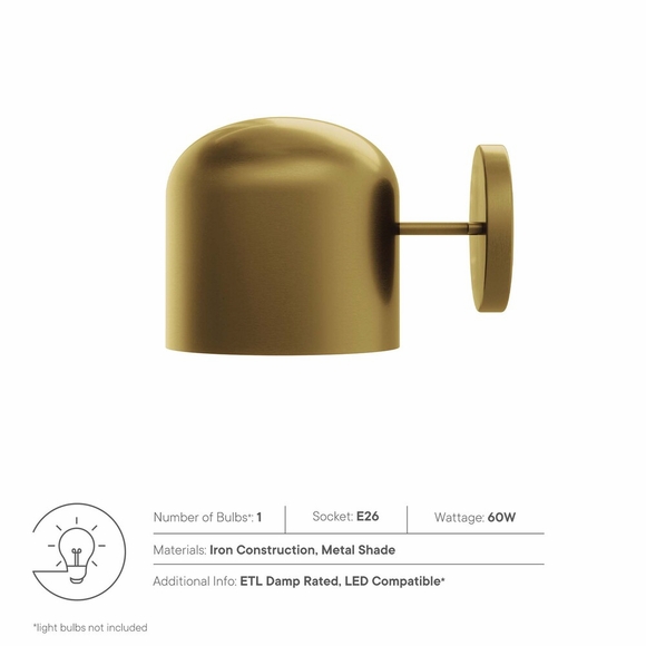 Enrich your home or apartment with the modern design of the Avenue 1-Light Wall Sconce. Designed to provide purposeful lighting in a bathroom, entryway, bedroom, dining room, hallway, or other living space, this wall light features an elongated dome shade giving it a simple contemporary style. This sleek light fixture is mounted to the wall with a round backplate and straight metal arm. This wall sconce requires one E26 bulb 60W max or LED equivalent (not included). UL Listed for Damp Locations. Luminaires that are "Suitable for Damp Locations" are approved for areas that are regularly exposed to moisture and condensation like the bathroom. Professional installation required.
