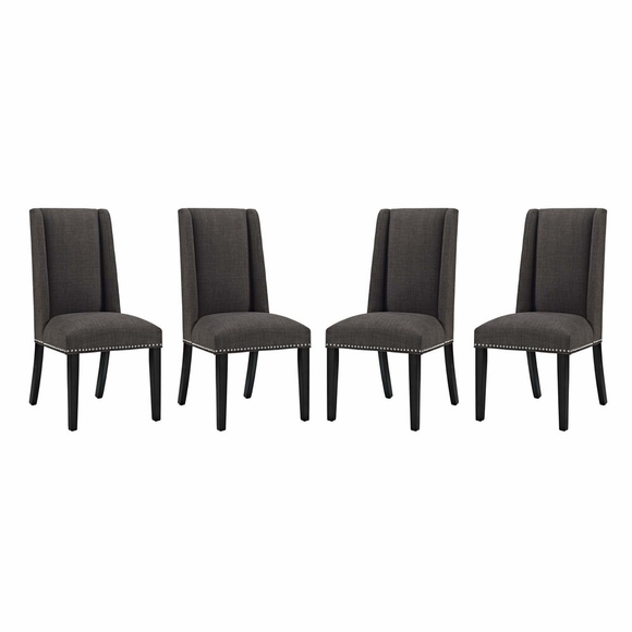 Explore the vast riches of a treasured heritage with the Baron Dining Chair. Designed to resonate elegance, Barons features a charming back and polished nailhead trimmed seat with a dash of grace and noble appeal. Complete with dense foam padding, fine fabric upholstery, solid wood frame and legs with non-marking foot glides, Baron is a stylish dining chair perfect for the modern home.