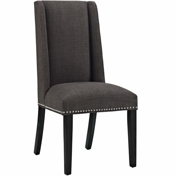 Explore the vast riches of a treasured heritage with the Baron Dining Chair. Designed to resonate elegance, this dining side chair features a charming back and polished nailhead trimmed seat with a dash of grace and noble appeal. Complete with dense foam padding, fine fabric upholstery, solid wood and MDF frame, and legs with non-marking foot glides, this updated Parsons chair is a stylish dining chair perfect for the dining room, living room, entryway, or home office. Weight Capacity: 500 lbs.