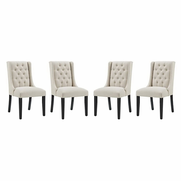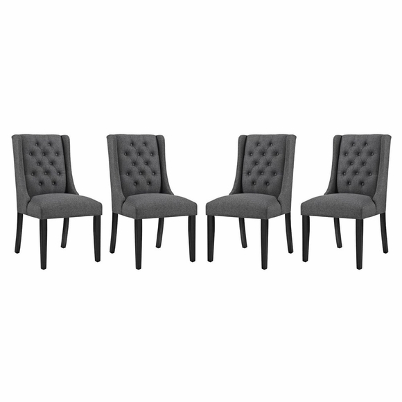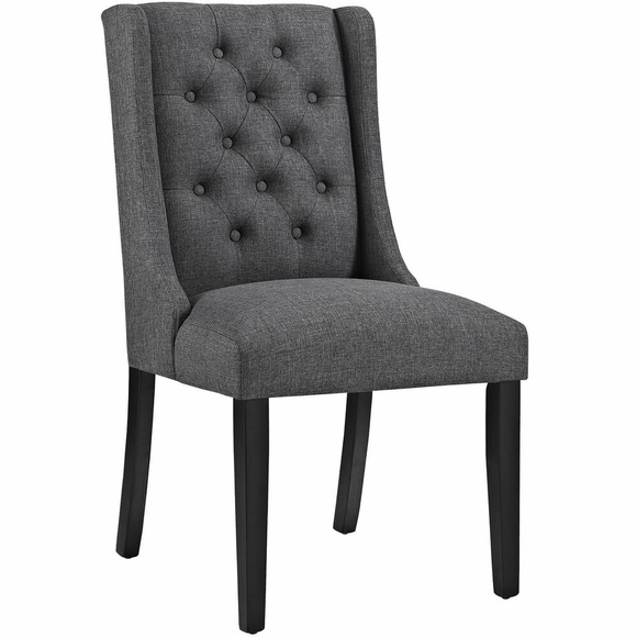 Bestow splendor with Baronet. Charm and elegance adorn this luxurious button tufted dining chair complete with sleek curves and dignified form. Featuring dense foam padding, fine fabric upholstery, a solid wood frame, and non-marking foot glides, Baronet is a stylish dining chair perfect for the modern home.