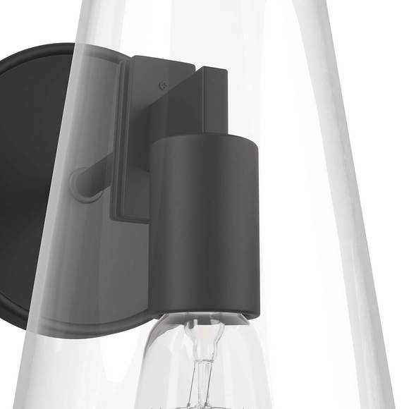 The Beacon Wall Sconce updates a living space, bedroom, dining room, bathroom, hallway, entryway, or office with minimalist sleekness that makes a modern statement. Offering a warm glow through its slim glass cone shade, this wall light is mounted to the wall by a round backplate and requires one E26 bulb 60W max or LED equivalent (not included). ETL Listed for Damp Locations. Luminaires that are "Suitable for Damp Locations" are approved for areas that are regularly exposed to moisture and condensation. Professional installation required.