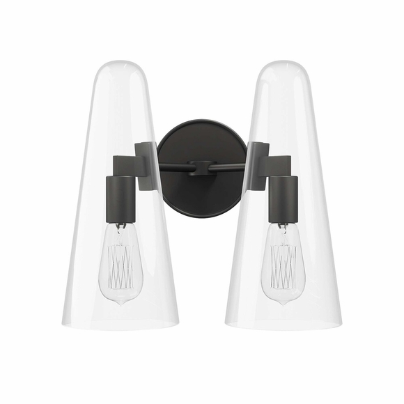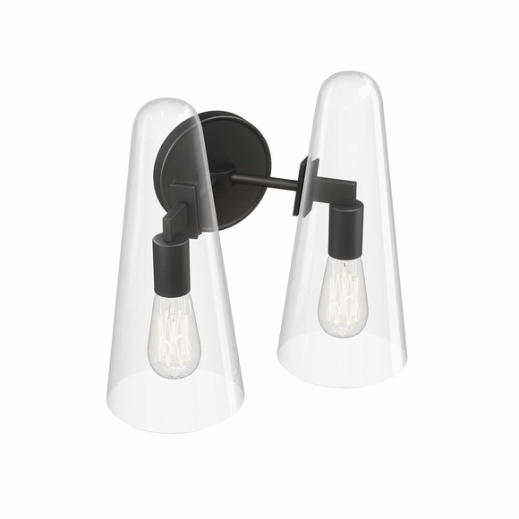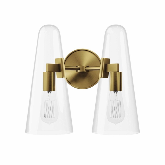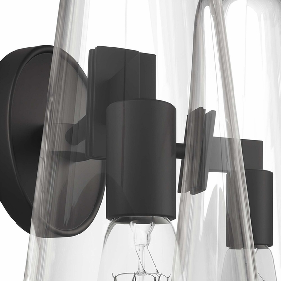 The Beacon Wall Sconce updates a living space, bedroom, dining room, bathroom, hallway, entryway, or office with minimalist sleekness that makes a modern statement. Offering a warm glow through its slim glass cone shades, this wall light is mounted to the wall by a round backplate and requires two E26 bulbs 60W max or LED equivalent (not included). ETL Listed for Damp Locations. Luminaires that are "Suitable for Damp Locations" are approved for areas that are regularly exposed to moisture and condensation. Professional installation required.