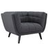 Generously update your decor with Bestow. Uniquely designed with a striking broad profile, Bestow comes finely upholstered in polyester fabric with dense foam padding and elegant button tufting. Sturdily positioned on splayed and tapered black finish wood legs with non-marking foot caps, Bestow boasts a bountiful living room seating design brimming with possibilities. with ample seat depth and overscaled frame, invite all your guests to sit comfortably in this 12" high back and armrest collection perfect for mid-century, modern farmhouse, or contemporary decors.