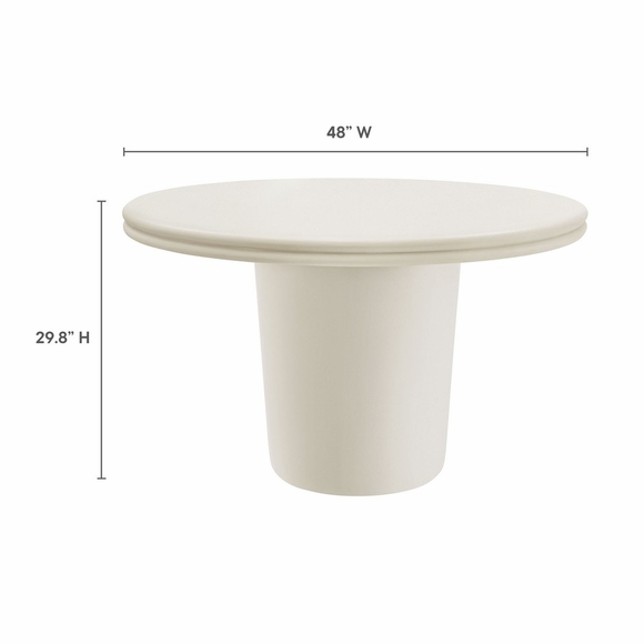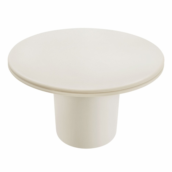 The Brion Concrete Round Dining Table makes a bold statement with its contemporary design and distinctive details. Crafted from solid concrete and finished with a sleek coating, this circular dining table provides both durability and a smooth, refined look. Featuring a striking round top with a double lip around the edge, the Brion 48-inch cement dining table complements any decor, whether used outdoors or indoors. Its cylindrical base, subtly tapered for a streamlined appearance, offers superior stability while maintaining a minimalist design. Perfect for gatherings of 2 to 4, this round dining table is equally at home in a modern dining room, cozy kitchen, or a stylish patio setting. Complete with non-marking leveling feet, it ensures stability on any surface while protecting your floors. No matter where its placed, the Brion indoor/outdoor cement dining table makes a bold statement with its durable construction and modern aesthetic. Assembly required. Weight Capacity: 230 lbs.