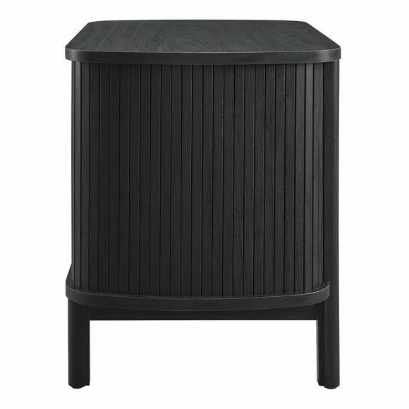 Revolutionize your bedroom or apartment decor with the Cadence 2-Drawer Nightstand. This modern nightstand is perfect at your bedside, offering both style and functionality. The unique design features rounded corners and fluted details, adding a stylish flair to any space. Crafted from high-quality materials such as rubberwood, particleboard, and MDF, the Cadence boho nightstand is designed for longevity and showcases a beautiful wood grain laminate, enhancing the organic aesthetics of your bedroom or living space. This two drawer nightstand features full-glide drawers, providing ample space for storing books and decorative items or keeping nighttime essentials out of sight. It includes non-marking foot glides for added stability. The Cadence fluted nightstand is a multi-functional piece that elegantly combines practicality with elegance and is versatile enough to serve as an open shelf side table, living room end table, or small accent table. Assembly required. Tabletop Weight Capacity: 79 lbs. Each Drawer Weight Capacity: 22 lbs.