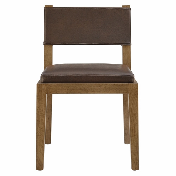 The Calder Dining Side Chair blends minimalist style with everyday comfort, making it an easy fit in any dining room, kitchen, or small-space setup. Built on a kiln-dried solid rubberwood frame, this modern dining chair feels sturdy under everyday use and adds a warm, natural look to your table. The cushioned seat and low back are wrapped in smooth vegan leather, creating a comfortable spot for weeknight dinners and longer gatherings. Calder's clean lines, armless shape, and compact profile make this leather dinner chair a natural fit for modern, Scandinavian, and minimalist dining rooms. Style it on its own, pair it with your existing dining room chairs, or match it with other Calder dining side chairs for a coordinated dining room setup. Includes non-marking floor glides. Arrives fully assembled. Weight Capacity: 300 lbs.