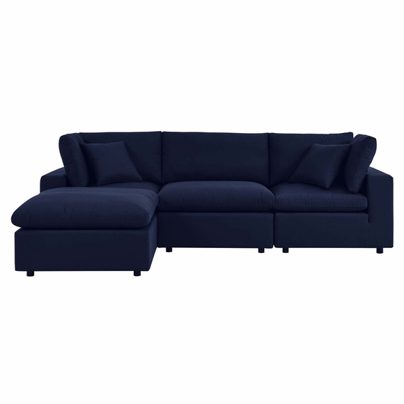 A haven for cozy relaxation right in your own backyard, Commix features plush comfort, a clean-lined design, and a spacious profile that makes an attractive statement on the porch, patio, or by the poolside. Made for sprawling out in the sun or curling up with a good book, this outdoor patio sectional sofa features generously padded cushions covered in water-repellent, UV-resistant Sunbrella® fabric covers making them ideal for your outdoor space. This outdoor sectional sofa features an all-weather construction with a powder-coated aluminum frame and non-marking foot caps to protect flooring surfaces. Beckoning guests to sit and stay a while, the Commix Outdoor Patio Collection is perfect for al fresco entertaining or lounging amidst warm weather. Set Includes: 1 Armless Chair, 1 Ottoman, 2 Corner Chairs. Each Chair Weight Capacity: 300 lbs.