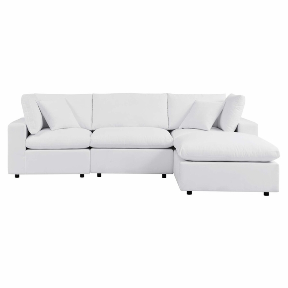 A haven for cozy relaxation right in your own backyard, Commix features plush comfort, a clean-lined design, and a spacious profile that makes an attractive statement on the porch, patio, or by the poolside. Made for sprawling out in the sun or curling up with a good book, this outdoor patio sectional sofa features generously padded cushions covered in water-repellent, UV-resistant Sunbrella® fabric covers making them ideal for your outdoor space. This outdoor sectional sofa features an all-weather construction with a powder-coated aluminum frame and non-marking foot caps to protect flooring surfaces. Beckoning guests to sit and stay a while, the Commix Outdoor Patio Collection is perfect for al fresco entertaining or lounging amidst warm weather. Set Includes: 2 Armless Chairs, 1 Ottoman, 1 Corner Chair. Each Chair Weight Capacity: 300 lbs.