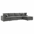A haven for cozy relaxation right in your own backyard, Commix features plush comfort, a clean-lined design, and a spacious profile that makes an attractive statement on the porch, patio, or by the poolside. Made for sprawling out in the sun or curling up with a good book, this outdoor patio sectional sofa features generously padded cushions covered in water-repellent, UV-resistant covers making them ideal for your outdoor space. This outdoor sectional sofa features an all-weather construction with a powder-coated aluminum frame and non-marking foot caps to protect flooring surfaces. Beckoning guests to sit and stay a while, the Commix Outdoor Patio Collection is perfect for al fresco entertaining or lounging amidst warm weather. Set Includes: 2 Armless Chairs, 1 Ottoman, 2 Corner Chairs. Each Chair Weight Capacity: 300 lbs.