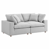 A haven for cozy relaxation, Commix features plush comfort, clean-lined design, and spacious profile, that makes an attractive statement in the modern home. Upholstered in polyester fabric that grants a luxe linen texture, this contemporary loveseat comes with solid wood construction and cotton and down cushions for a luxurious sink-in feel. Commix comes with generously padded down feather and cotton cushions, and padded foam bases, making this sectional sofa collection perfect for the living room, family room, or game room. Made for sprawling out or curling up, Commix beckons you and guests to sit and stay a while. Includes plastic foot glides. Each Seat Weight Capacity: 331 lbs.