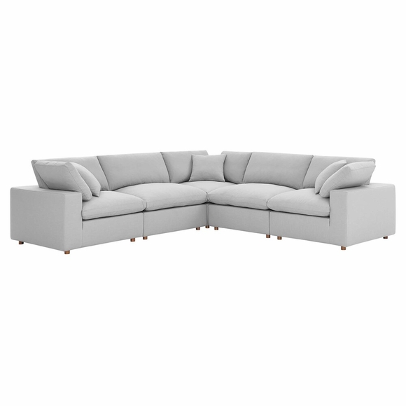 A haven for cozy relaxation, Commix features plush comfort, clean-lined design, and spacious profile, that makes an attractive statement in the modern home. Upholstered in polyester fabric that grants a luxe linen texture, this contemporary sectional sofa comes with solid wood construction and cotton and down cushions for a luxurious sink-in feel. Commix comes with generously padded down feather and cotton cushions, and padded foam bases, making this sectional sofa collection perfect for the living room, family room, or game room. Made for sprawling out or curling up, Commix beckons you and guests to sit and stay a while. Includes plastic foot glides. Corner piece includes two back pillows and a throw pillow. Each Seat Weight Capacity: 331 lbs.