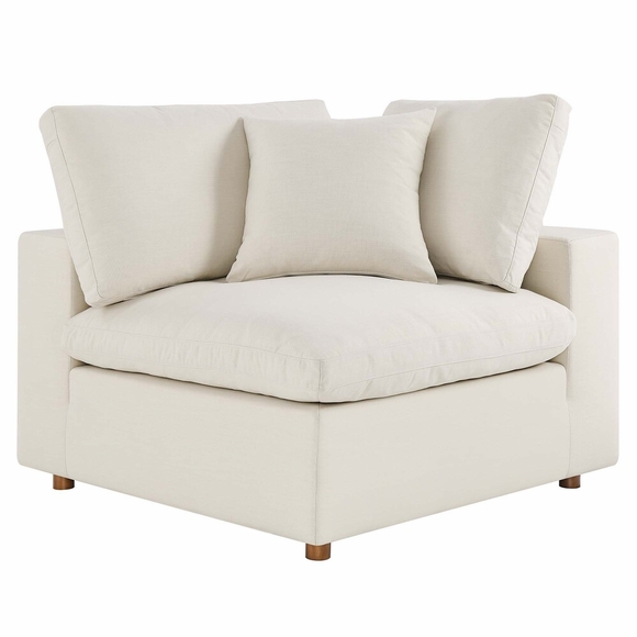 A haven for cozy relaxation, Commix features plush comfort, clean-lined design, and spacious profile, that makes an attractive statement in the modern home. Upholstered in polyester fabric that grants a luxe linen texture, this contemporary sectional sofa comes with solid wood construction and cotton and down cushions for a luxurious sink-in feel. Commix comes with generously padded down feather and cotton cushions, and padded foam bases, making this sectional sofa collection perfect for the living room, family room, or game room. Made for sprawling out or curling up, Commix beckons you and guests to sit and stay a while. Includes plastic foot glides. Corner piece includes two back pillows and a throw pillow. Each Seat Weight Capacity: 331 lbs.