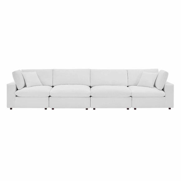 A haven for cozy relaxation, Commix features plush comfort, clean-lined design, and spacious profile, that makes an attractive statement in the modern home. Covered in stain-resistant performance velvet, this upholstered sofa comes with a solid wood construction and foam padded and duck down cushions for a luxurious sink-in feel. Commix features overstuffed down feather cushions that offer a feeling of relaxation and calming comfort while lounging, making it the perfect addition to the living room, family room, or game room. Made for sprawling out or curling up, Commix beckons you and guests to sit and stay a while. Includes plastic foot glides. Weight Capacity of Each Piece: 331 lbs.