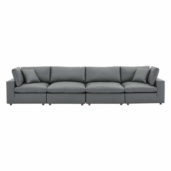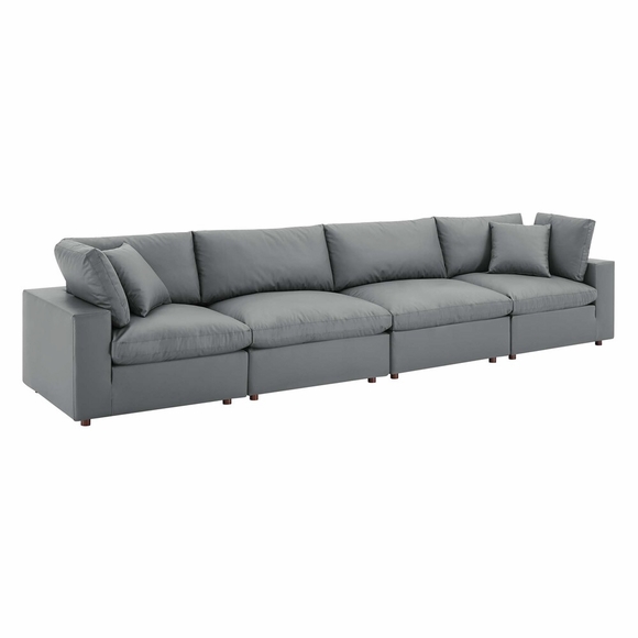 A haven for cozy relaxation, Commix features plush comfort, clean-lined design, and spacious profile, that makes an attractive statement in the modern home. Covered in vegan leather, this upholstered sofa comes with a solid wood construction and foam padded and duck down cushions for a luxurious sink-in feel. Commix features overstuffed down feather cushions that offer a feeling of relaxation and calming comfort while lounging, making it the perfect addition to the living room, family room, or game room. Made for sprawling out or curling up, Commix beckons you and guests to sit and stay a while.