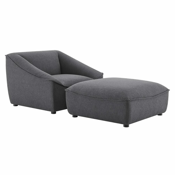 Indulge in cozy relaxation in the comfort of your own home with the Comprise Upholstered Armchair and Ottoman Set. A casual design accented with French piping details, this lounge chair and ottoman set features dense foam padding, soft polyester upholstery and a pocket coil spring system to offer a premium seating experience. Solidly constructed with solid wood and plywood, this upholstered armchair and ottoman rest atop sturdy rubberwood legs. Create a custom living room or lounge area with the Comprise Living Room Furniture Collection. Set Includes: 1 Armchair, 1 Ottoman. Weight Capacity: 400 lbs. Each
