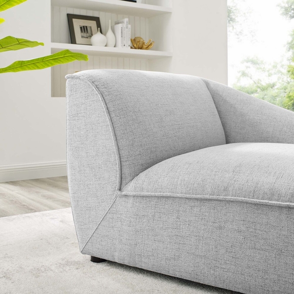 Indulge in cozy relaxation in the comfort of your own home with the Comprise Upholstered Right-Arm Sectional Sofa Chair. A casual design accented with French piping details, this sectional sofa piece features dense foam padding, soft polyester upholstery and a pocket coil spring system to offer a premium seating experience. Solidly constructed with solid wood and plywood, this upholstered sectional sofa collection rests atop sturdy rubberwood legs with secure connectors between modular pieces. Create a custom living room or lounge area with the Comprise Living Room Furniture Collection. Chair Weight Capacity: 400 lbs.