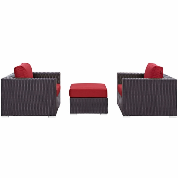 Set Includes: Two - Convene Outdoor Patio ArmchairOne - Convene Outdoor Patio Fabric Ottoman