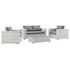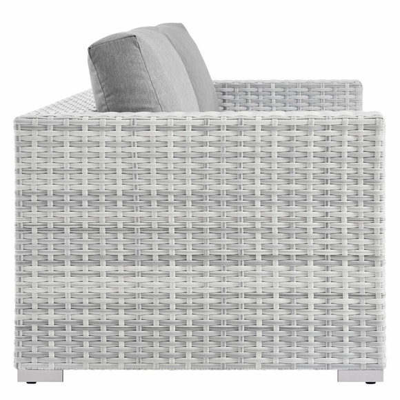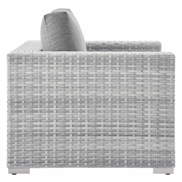 Gather stages of sensitivity with the Convene Outdoor Series. Made with a synthetic rattan weave and a powder-coated aluminum frame, Convene is a versatile outdoor furniture set that shifts and combines according to the spontaneous needs of the moment. Outfitted with all-weather fabric cushions, the Convene Sectional Set leaves a positive impression on friends and family while enhancing your patio, backyard, or poolside retreat with palpable distinction. This outdoor patio furniture set includes two armchairs, a loveseat, and a coffee table.