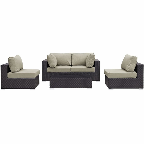Gather stages of sensitivity with the Convene Outdoor Sectional series. Made with a synthetic rattan weave and a powder-coated aluminum frame, Convene is a versatile outdoor furniture set that shifts and combines according to the spontaneous needs of the moment. Outfitted with all-weather fabric cushions, leave a positive impression on friends and family while enhancing your patio, backyard, or poolside repast in this series of palpable distinction. This installment of the series is an Outdoor Patio Sectional Sofa Set.