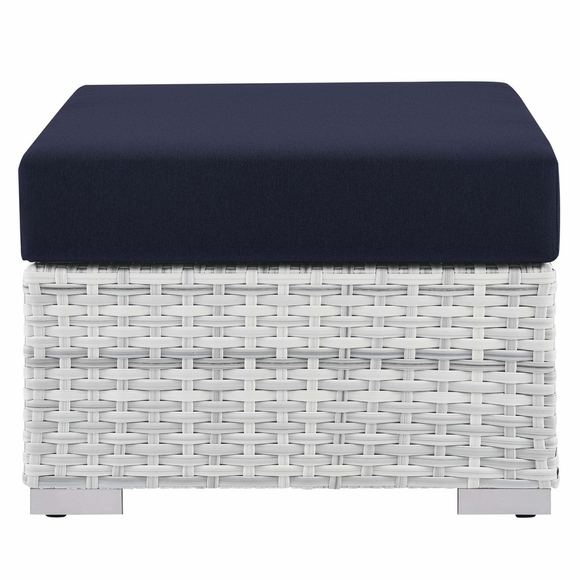 Gather stages of sensitivity with the Convene Outdoor Series. Made with a synthetic rattan weave and a powder-coated aluminum frame, Convene is a versatile outdoor furniture set that shifts and combines according to the spontaneous needs of the moment. Outfitted with all-weather fabric cushions, the Convene Sectional Set leaves a positive impression on friends and family while enhancing your patio, backyard, or poolside retreat with palpable distinction. This outdoor patio furniture set includes one armchair, one ottoman, one sofa, two side tables, and one coffee table.
