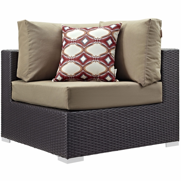 Gather stages of sensitivity with the Convene Outdoor Sectional series. Made with a synthetic rattan weave and a powder-coated aluminum frame, Convene is a versatile outdoor furniture set that shifts and combines according to the spontaneous needs of the moment. Outfitted with all-weather fabric cushions, leave a positive impression on friends and family while enhancing your patio, backyard, or poolside repast in this series of palpable distinction. This installment of the series is an Outdoor Patio Sectional Sofa Set.