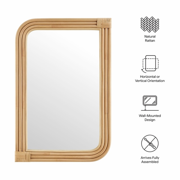 Bring natural warmth and timeless style to your space with the Corsica Rectangle Rattan Wall Mirror. Framed in smooth, thick rattan, this wall-mount rectangle mirror blends rustic charm with modern versatility. Its gently rounded corners and handwoven rattan details create a laid-back, boho-coastal feel perfect for a bathroom, bedroom, living room, or entryway. Designed to hang either horizontally or vertically, this rattan mirror adapts to your decor style-whether as a statement piece above a console or a practical vanity mirror. The reflective glass is surrounded by a sturdy rattan frame for durability and a warm, natural finish.