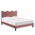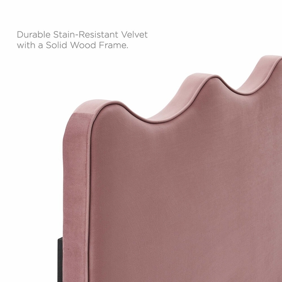 Bring the imagery of waves crashing against the shore to a kid's bedroom or guest room with the Current Performance Velvet Twin Platform Bed. Putting a modern twist on a classic scalloped design, the twin headboard of this platform bed features luxe texture and a silhouette inspired by the ocean waves while dense padding offers a supportive place to sit back and relax while sitting up in bed. Covered in stain-resistant performance velvet, this upholstered bed frame is a sturdy mattress foundation for memory foam, innerspring, latex, and hybrid mattresses. Eliminating the need for a box spring, the MDF frame of this twin bed is complete with a wood slat support system crafted with poplar for lasting durability and support. This slatted bed frame rests on black wood legs with non-marking foot caps and includes a reinforced center beam with two support legs for enhanced stability. Assembly required. Weight Capacity: 800 lbs.