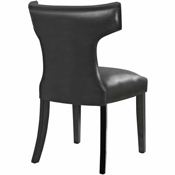 Transform your dining decor with the broadly designed Curve Dining Side Chair. Sweeping lines complement a minimalist shape for a chic look studded with nailhead trim. Curve comes generously padded with dense foam covered in vinyl, non-marking foot caps, and delivers just the right touch of finesse with tapered wood legs. Sporting an hourglass shape, Curve works well in a variety of dining room arrangements.