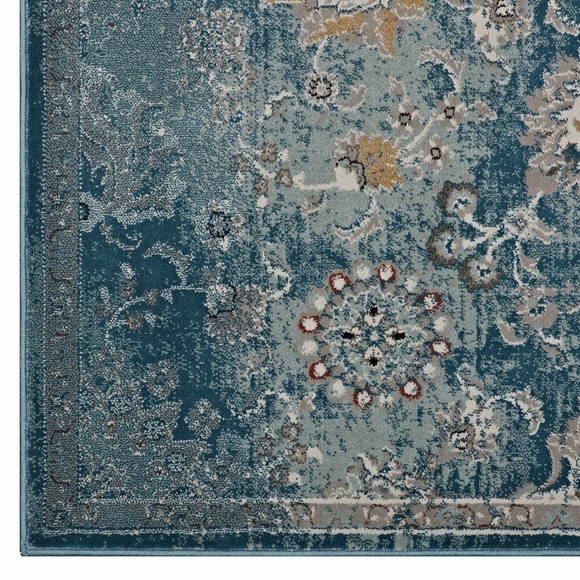 Make a sophisticated statement with the Cynara Distressed Floral VintageMedallion Area Rug. Patterned with an elegant design, Cynara is a durable machine-woven two-ply polypropylene yarn rug. Complete with a gripping rubber bottom, Cynara enhances traditional and contemporary modern decors while outlasting everyday use. Featuring a ornate floral design with a low pile weave, the area rug is a perfect addition to the living room, bedroom, entryway, kitchen, dining room or family room. Cynara is a family-friendly stain resistant rug with easy maintenance. Vacuum regularly and spot clean with diluted soap or detergent as needed. Create a comfortable play area for kids and pets while protecting your floor from spills and heavy furniture with this carefree decor update for high traffic areas of your home.