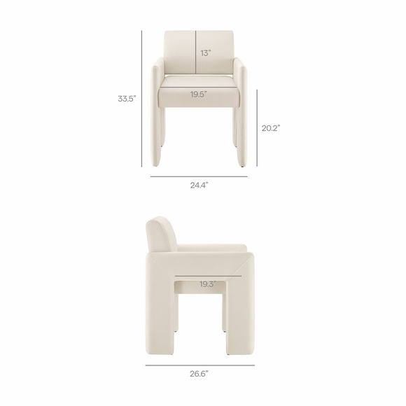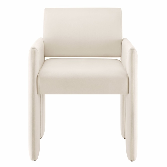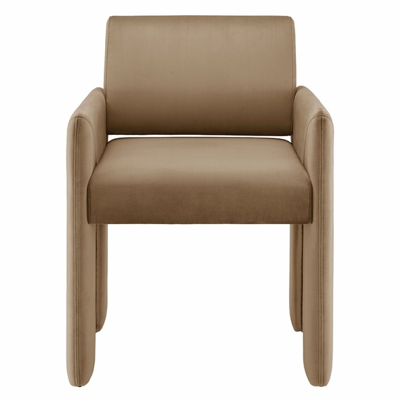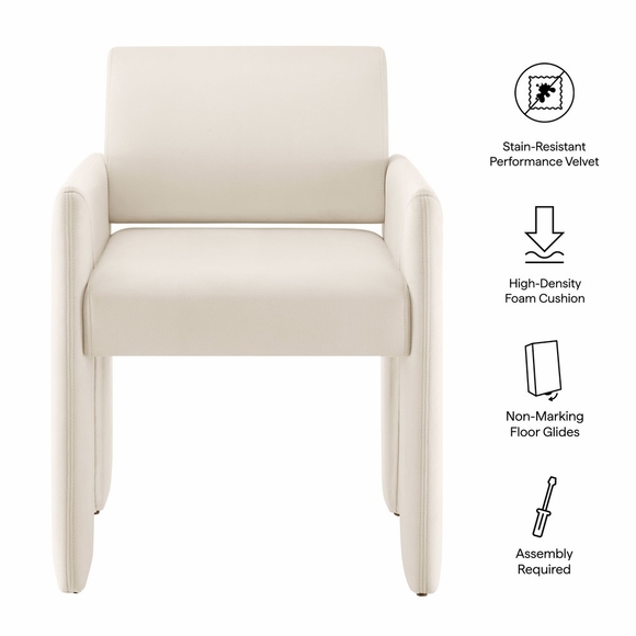 The Daven Velvet Dining Chair combines mid-century modern style with supportive comfort in a sleek, versatile design. Fully upholstered in stain-resistant performance velvet, this modern armchair delivers a clean silhouette ideal for dining rooms, offices, bedrooms, or living rooms. Thoughtfully constructed with a webbed seat support system and dense foam cushioning, Daven offers lasting comfort whether used as a modern upholstered dining chair or an occasional accent seat. Its distinctive base features angled legs and a low-profile stance, creating a spacious architectural look while remaining compact enough for small spaces. Designed with both aesthetics and practicality in mind, Daven includes discreet floor glides to protect surfaces and a secure bracket system to keep the backrest in place. This dining arm chair adds sculptural appeal when styled as a chic velvet dining chair, reading nook accent, or office guest chair. Assembly required. Weight Capacity: 500 lbs.