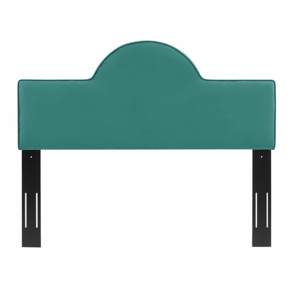 Awaken a master bedroom or guest bedroom with the energizing style of the Dawn Performance Velvet Full/Queen Headboard. Featuring an arching silhouette reminiscent of the morning sunrise, this upholstered headboard is covered in stain-resistant performance velvet that offers luxe texture and a glam deco look. This queen size headboard is padded with dense foam creating a soft, supportive place to rest and relax while sitting up in bed. with a sturdy construction and adjustable height, this velvet headboard features five mounting positions to fit almost any queen or full bed frame. Interchangeable with the Harlow, Reign, and Sutton bed frame. Assembly required.
