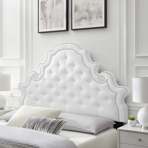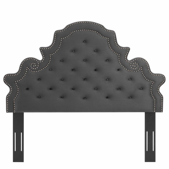 Elaborate details exude regal luxury and vintage glamour on the Diana Tufted Performance Velvet Twin Headboard. Featuring classic button tufting and nailhead trim framing the avant garde silhouette, this twin headboard is a stunning addition to a kid's bedroom, guest bedroom, or college dorm room. Upholstered in soft, stain-resistant performance velvet, this padded headboard offers supportive comfort while sitting up in bed reading, relaxing, or watching TV. with various mounting positions, this height-adjustable headboard fits twin bed frames. Assembly required.