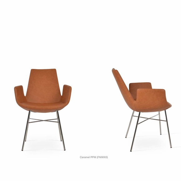 Eiffel Arm Cross is a contemporary chair with a comfortable upholstered seat and backrest on cross matt brushed nickel legs. The seat has a steel structure with “S” shape springs for extra flexibility and strength. This steel frame is molded by injecting polyurethane foam. Eiffel seat is upholstered with a removable velcro, enclosed leather, PPM, leatherette, wool as well as Camira organic wool slip cover that can be changed with professional help. Eiffel Arm Cross may be upholstered with variety of other colors as a special order with a minimum of quantity required. The chair is suitable for both residential and commercial use. Eiffel Arm Cross is designed by the sohoConcept team.
