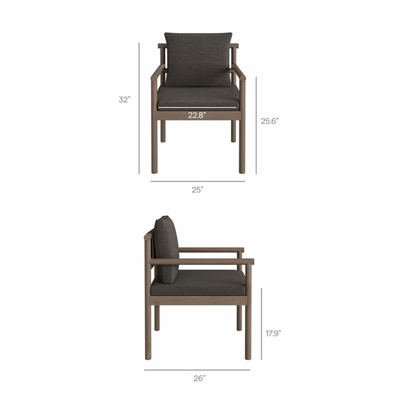Made for open-air meals, the Eleni Outdoor Teak Wood Dining Set brings a warm coastal presence to patios and decks. Crafted from solid teak that showcases the wood's natural grain, the 89-inch rectangular table pairs with six armchairs for an easy, gathered look. Each chair features a woven rope accent at the top of the backrest, while the upholstered seat and back cushions that hold their shape through sun and showers. The table's slatted top promotes airflow and quick drainage, while rounded posts keep the silhouette clean and sturdy. Non-marking foot caps on both table and chairs help protect decking and stone. Simple assembly required