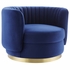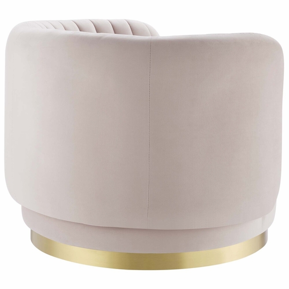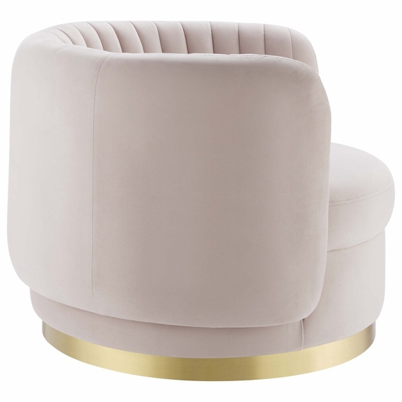Relax amidst luxury with the Embrace Channel Tufted Performance Velvet Swivel Chair. Adorned with vertical channel tufting, gold metal accents, and a beautiful curved silhouette, this velvet accent chair brings vintage modern luxury and glam deco style to a living room, bedroom, entryway, home office, or seating area. This upholstered chair is covered in soft, stain-resistant performance velvet and is padded with dense foam and a spring support system to create a premium seating experience. Resting on a gold metal swivel base, this swivel chair effortlessly maneuvers to suit the needs of the moment. Weight Capacity: 300 lbs.