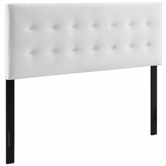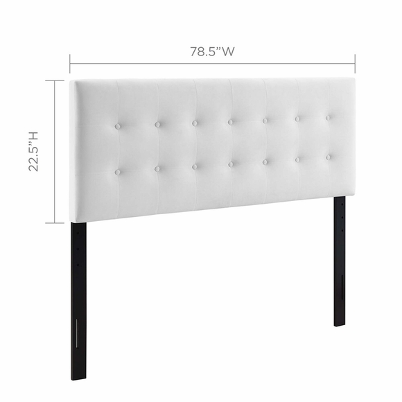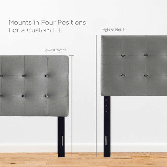 Instill classic elegance and modern luxury with the Emily Performance Velvet Biscuit Tufted King Headboard. Emily features beautiful biscuit button tufting for plush vintage glamour and timeless appeal. An elegant centerpiece to a master suite or guest bedroom, this upholstered velvet headboard for king bed frames provides a soft, stain-resistant update for premium comfort while relaxing, reading, or conversing in bed. Solidly constructed from plywood and fiberboard with dense foam padding, this king-size velvet headboard comes with five mounting positions that are height adjustable from 45" - 52.5".