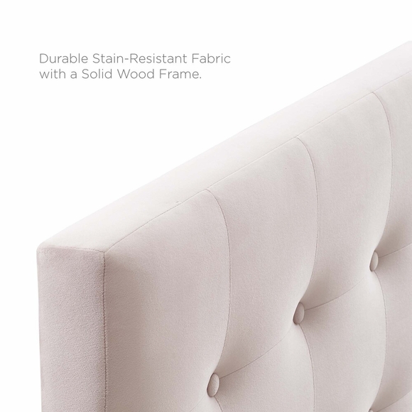 Instill classic elegance and modern luxury with the Emily Queen Biscuit Tufted Performance Velvet Headboard. Emily features charming biscuit button tufting for plush vintage glamour and timeless appeal. An elegant centerpiece to the master bedroom or guest suite, this upholstered velvet headboard for queen bed frames provides a soft, stain-resistant update for premium comfort while relaxing, reading, or conversing in bed. Solidly constructed from plywood and fiberboard with dense foam padding, this queen size velvet headboard comes with five mounting positions that are height adjustable from 45" - 52.5".